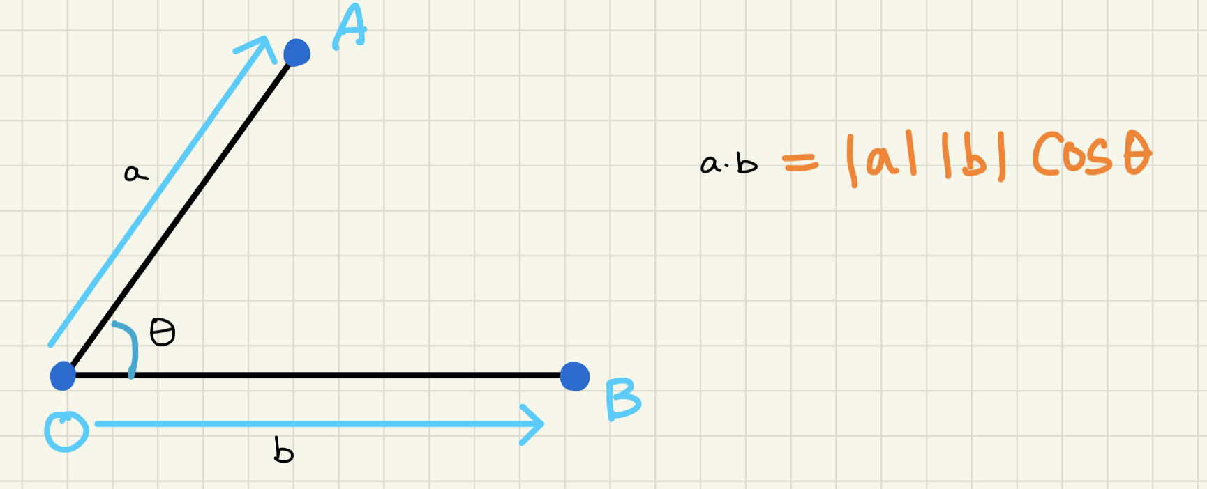 내적은 a, b 벡터의 크기의 곱하고 두 벡터 사이의 각도를 cos 한 값이다.
