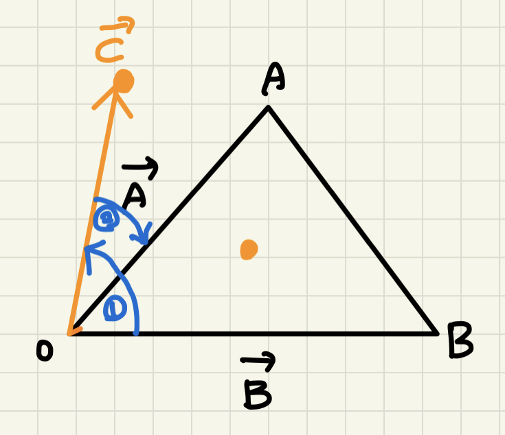0에서 c점을 이은 벡터를 C라고 하겠습니다.