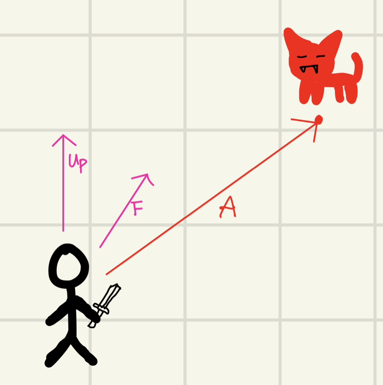 A는 몬스터와 플레이어 간의 벡터 라고 가정한다.